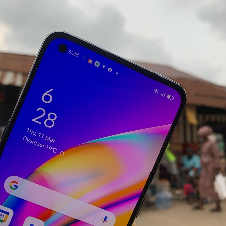 Reno5 F’s battery back is made with composite panels and can resist shattering or cracking when it falls. It weighs just 172g and has an overall thickness of 7.8mm which makes it one of the slimmest phones to be launched in 2021. Holding the phone was comfortable and very light to carry around, it can easily fit into your pocket.
